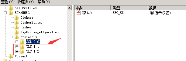 进入[HKEY_LOCAL_MACHINE\SYSTEM\CurrentControlSet\Control\SecurityProviders\SCHANNEL\Protocols]