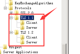 那么你就需要在Protocols下面建立两个目录,分别为:TLS 1.1和TLS 1.2